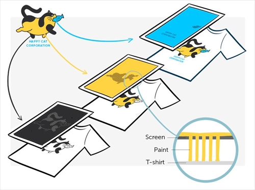 シルク印刷は、孔版印刷の一種で、1色ごとに「版」を作成し、インクを直接素材に乗せていく、昔ながらの確実な印刷方法です。