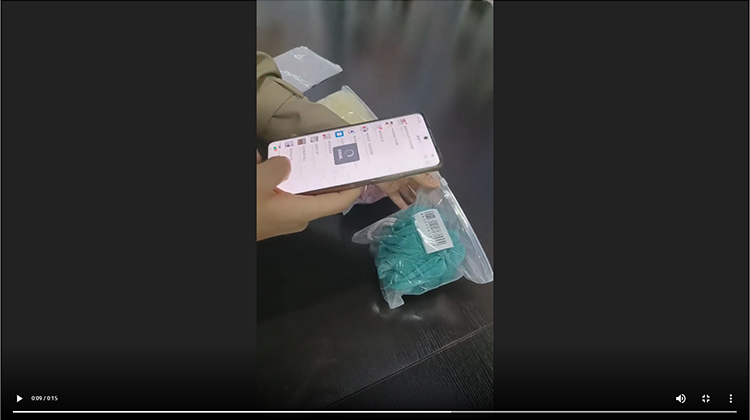 袋の中にカードを入れてJANコードの読み取りテストを行い、スムーズに読み取りが出来た事を動画で確認しました。