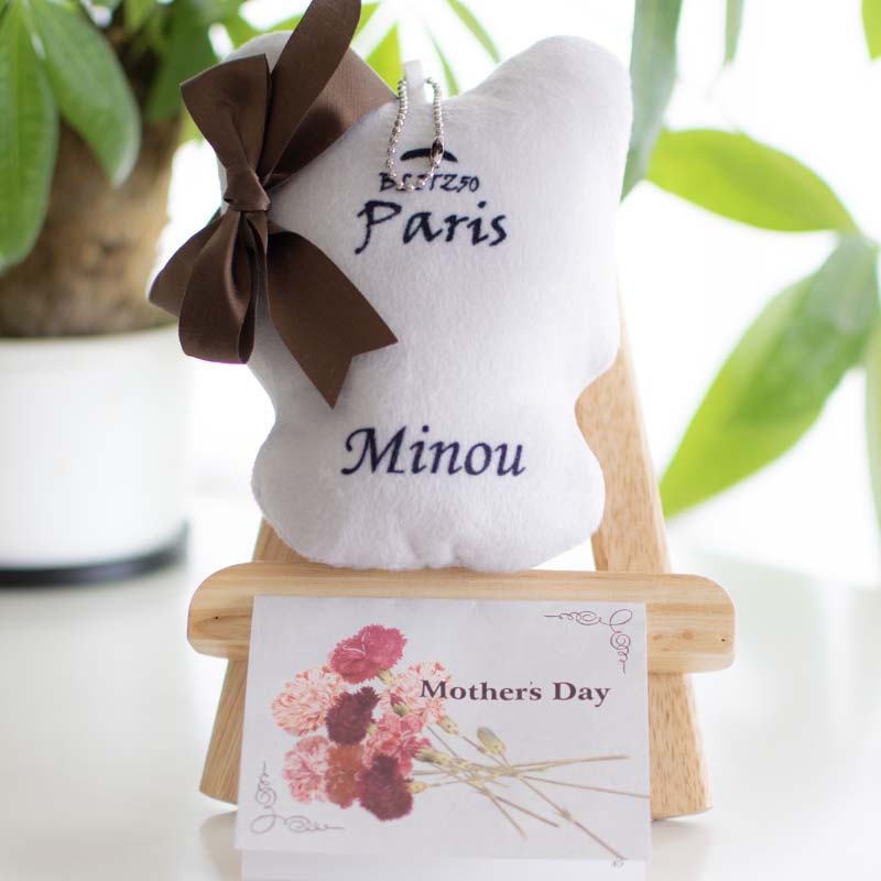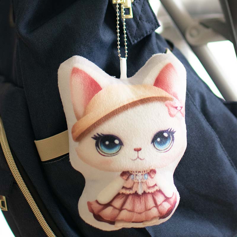 ふわふわしたフラシ天(柔らかく毛があるベルベット素材)の、ぬいぐるみマスコット。